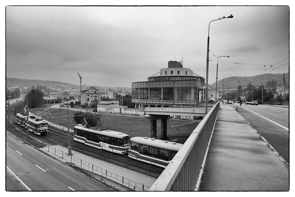 Rozhodnutí o stavbě trolejbusové rozvodny padlo již v osmdesátých letech, stavební práce začaly ale až v roce 1994, slavnostní otevření se konalo v roce 1997. Vozovna je dvoupodlažní a vejde se do ní více než 80 trolejbusů. Most na Jundrovské ulici nad ulicí Kníničskou (na první fotografii) má nedodělané nájezdy.